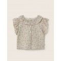 Preciosa blusa con estampado de florecitas. Volante en las mangas y en el cuello. Abierto por delante.