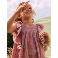Vestido de algodón con detalles de punto smock a mano.