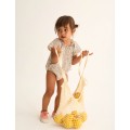 Precioso pelele estampado con goma en el cuello y botones en la entrepierna.