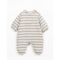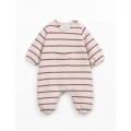 Este pelele está confeccionado en punto con mezcla de algodón regenerativo y algodón reciclado, en color Rosa Oscuro. Es un modelo largo con interior ligeramente afelpado, apertura en el hombro con botón de madera, apertura entre las piernas con corchetes de metal sin níquel, aplicación de elástico en las aberturas de piernas y brazos y un bolsillo en la parte delantera.