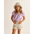 Short en algodón estampado. Goma en la cinturilla para ajustar. Detalle de bolsillos en la parte delantera. 66% liocell, 30% algodón, 4% elastano.