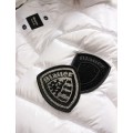 Plumífero niña acolchado a rayas horizontales. Prenda con relleno ligero, cálido y poco voluminoso, de colores fashion y con corte que realza la cintura.