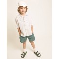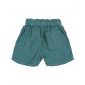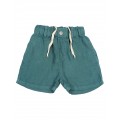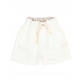 Pantalón corto de lino 100% con suave efecto lavado y un aire relajado. Cintura elástica con cinta de algodón interior para mejor ajuste. Botón decorativo enfrente. Bolsillos frontales. Bolsillo tipo plastrón en la espalda con detalle bordado al tono.