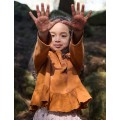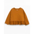 Esta túnica está confeccionada en punto con una mezcla de algodón orgánico, algodón reciclado y algodón, en color Naranja. Es un modelo de manga larga, con escote redondo y volante en el bajo.