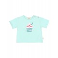 Camiseta manga corta de algodón orgánico con estampado ice cream en el pecho. Cuello redondo. Apertura en el hombro con botones.