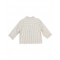 Chaqueta de lino algodón con raya tejida. Cuello tipo camisa. Abotonado delantero. Bolsillos frontales tipo plastrón. Etiqueta decorativa en un bolsillo. Atacados y ojales con hilo a contraste.