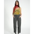 Pantalon en tejido vaquero print. Botones en la parte frontal. Bolsillos laterales.