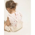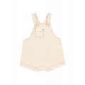 Peto corto de sarga. Detalles de pespuntes y atacados con hilo a contraste. Tirantes de dos posiciones con botón en el frente y unidos detrás. Bolsillo tipo plastrón en el pecho. Etiqueta decorativa y bolsillo en la espalda. Botones de presión en la entrepierna para una puesta fácil.