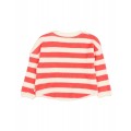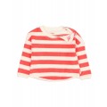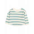 Sudadera de rizo suave de algodón orgánico tejido a rayas. Manga larga. Cuello redondo con cierre botones a presión en el hombro. Acabados escote, bajo y puños en canalé de algodón crudo.