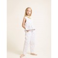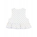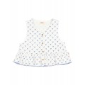 Top de tejido de algodón pespunteado con estampado bali. Volante en el bajo con acabado repulgo a contraste. Escote redondo. Abotonado frontal con botones de madera.