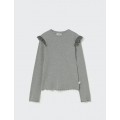 Camiseta de algodón acanalada con volante en los hombros. 94% algodón 6% elastano