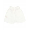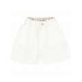 Pantalón corto de lino 100% con suave efecto lavado y un aire relajado. Cintura elástica con cinta de algodón interior para mejor ajuste. Botón decorativo enfrente. Bolsillos frontales. Bolsillo tipo plastrón en la espalda con detalle bordado al tono.