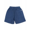 Pantalón corto de muselina de algodón. Cintura elástica con cinta de algodón crudo para mejor ajuste. Botones decorativos de madera enfrente. Bolsillos frontales. Bolsillo tipo plastrón en la espalda. Forro cinturilla de tejido a cuadritos.