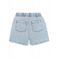 Pantalón corto denim delavado claro. Cinturilla elástica con cordón de algodón crudo para un mejor ajuste. Bolsillos frontales y tipo plastrón en la espalda. Detalles de pespuntes y atacados con hilo a contraste.