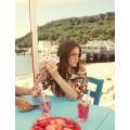 Blusa estampada con cuellos bobos y mangas abullonadas.