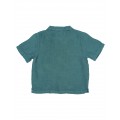 Camisa de lino 100% con suave efecto lavado y un aire relajado. Manga corta. Cuello tipo bowling y abotonado delantero. Detalle bordado al tono en el pecho.