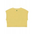 Camiseta de algodón sin mangas, corta, pero no demasiado.