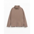 Esta camiseta de punto está confeccionada en algodón orgánico, en color Marrón Claro. Es un modelo de manga larga y cuello alto.