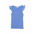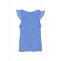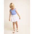 Camiseta de tirantes de canalé ancho en algodón orgánico. Cuello redondo. Volante de voile de algodón en los hombros. Detalle bordado a contraste en el lateral del bajo.