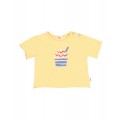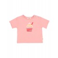 Camiseta manga corta de algodón orgánico con estampado ice cream en el pecho. Cuello redondo. Apertura en el hombro con botones.