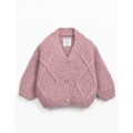 Esta chaqueta de punto está confeccionada con una mezcla de hilo de lana reciclada, lana y viscosa, en nuestro color Rosa Claro. Es un modelo de manga larga, escote en V y apertura frontal con botones de coco.