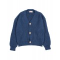Cardigan de punto perlado de algodón orgánico. Manga larga. Cuello en pico. Abotonado delantero con botones de madera.