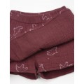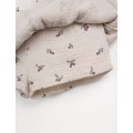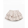 Esta falda pantalón está confeccionada en tejido de algodón, en color Cru. Es un modelo con cintura elástica, capas de volantes y nuestro estampado de madroños.
