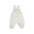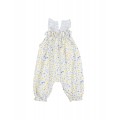 Mono ancho en seersucker de algodón con estampado picnic. Parte superior con goma elástica y fruncido. Tirantes elásticos. Botones de presión en la entrepierna para una puesta fácil. Goma elástica en el bajo. Acabados con repulgo a contraste.