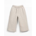 Estos pantalones felpa están confeccionados en punto con mezcla de algodón, algodón reciclado y poliéster reciclado, en color Crudo. Son un modelo con interior afelpado, cintura elástica y cordón decorativo.
