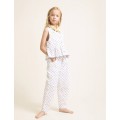 Pantalón largo de algodón pespunteado con estampado bali. Cintura elástica con cinta de algodón crudo para mejor ajuste. Bolsillos frontales.