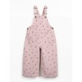 Este peto está confeccionado en sarga de algodón en color rosa claro. Es un modelo con tirantes ajustables, apertura en el pecho y lateral con corchetes de metal sin níquel, y un bolsillo en el pecho con nuestro estampado de madroños.