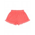Pantalón corto de rizo suave con volante de punto liso algodón. Cintura elástica. Detalle bordado a contraste.
