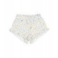 Pantalón corto en seersucker de algodón con estampado picnic. Volantes en el bajo con acabado repulgo a contraste. Cintura elástica con cinta decorativa.