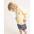 Sudadera de felpa suave en algodón orgánico con capucha. Motivo joyful estampado en el pecho. Bolsillo canguro enfrente. Acabados acanalados en bajo y puños.