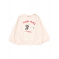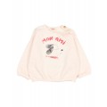 Sudadera de felpa suave en algodón orgánico con motivo Mon Ami estampado en el pecho. Cuello redondo con cierre con botón de madera en el hombro.